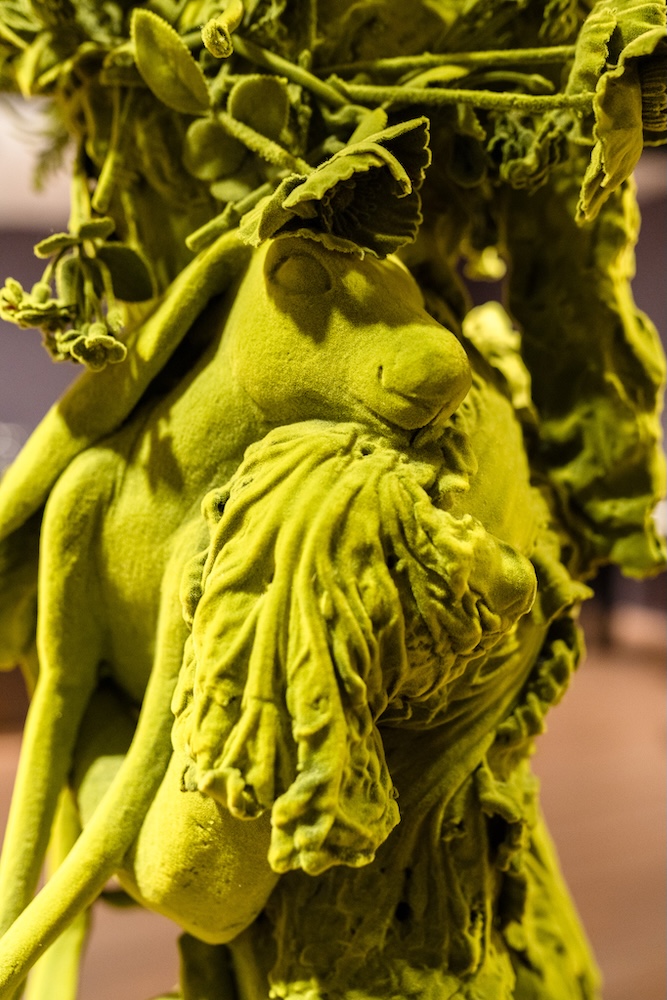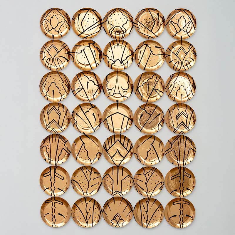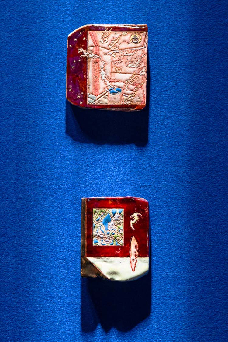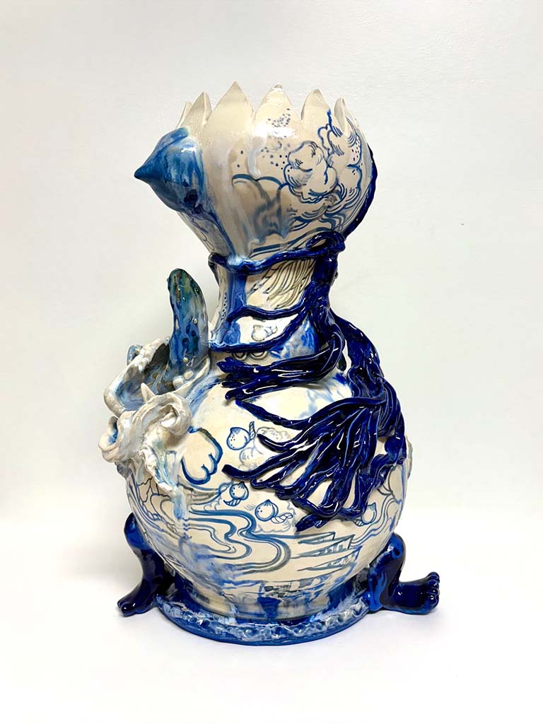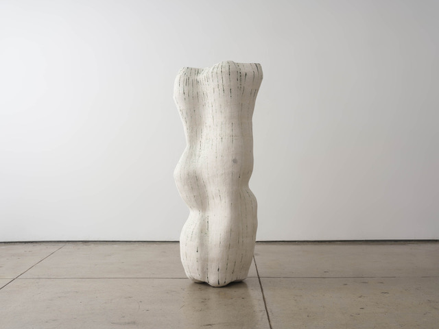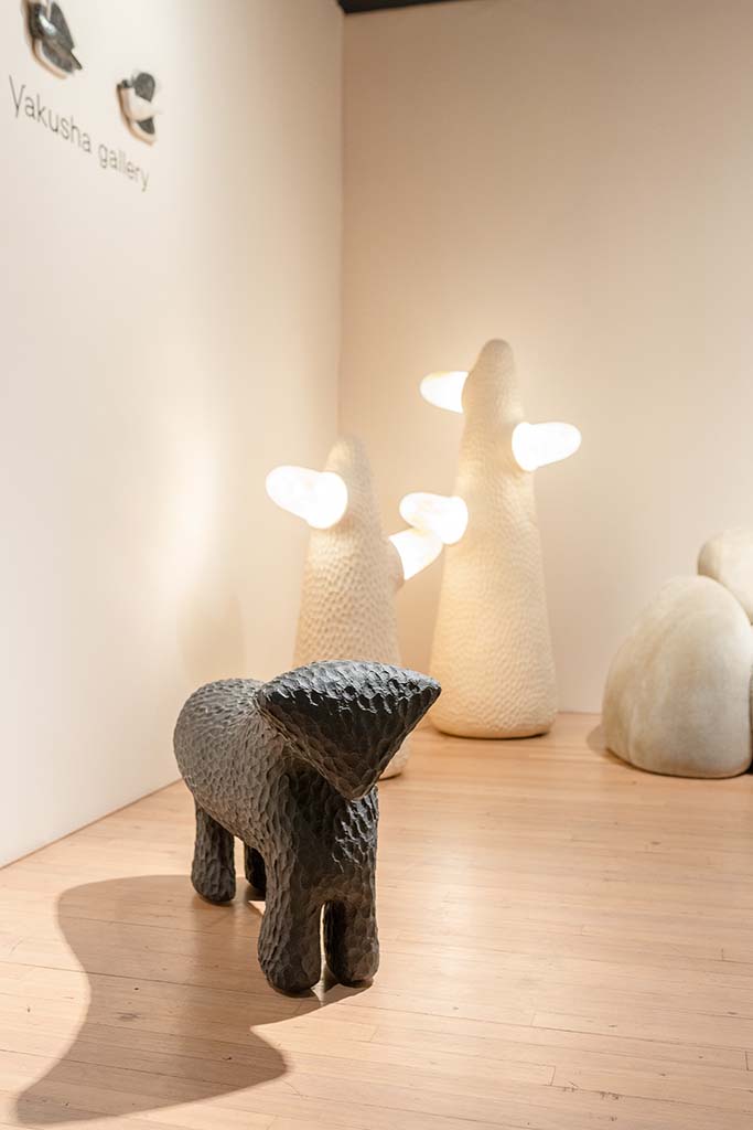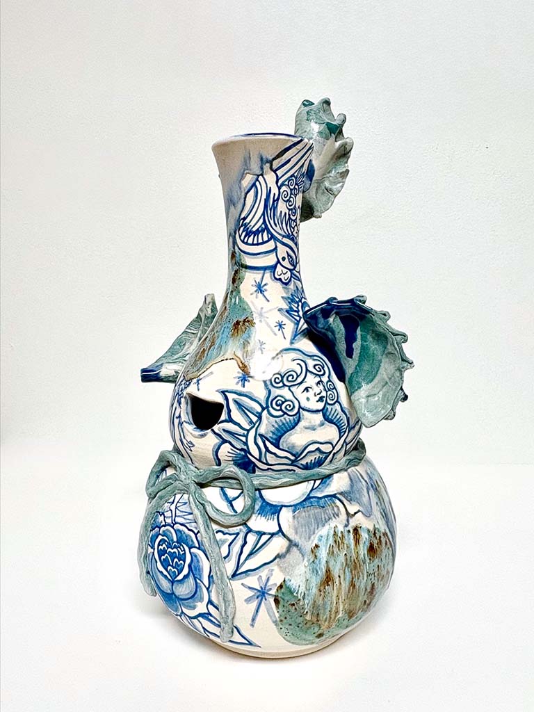 Hostler Burrows presents a memorable constellation of clay: the moss-green, fairytale figures of Kim Simonsson; Kirsi Kivivirta’s geometric stoneware wall pieces, composed from small, puzzle-like arrangements; and Irene Nordli’s convulsive, creaturely vessels—also on view at the gallery’s Tribeca location in Both Sides Now. Ippodo Gallery introduces works by Agnes Husz—spiraling slabs of clay that twist into abstract forms—and by Masahiro Maeda, whose iro-e practice reimagines traditional techniques through contemporary surface patterning. At Onishi Gallery, a concentrated display of Bizen ware—shaped by flame, ash, and centuries of tradition—provides a grounding counterpoint, with a more expansive presentation continuing through November 21 at the gallery’s Upper East Side location. At Shoshana Wayne Gallery, Jiha Moon’s narrative vessels—hybrid forms animated by folklore and pop-cultural gesture—take confident prominence, as LES Collection presents Gianfranco Briceño’s painted pots, their surfaces tracing intimate narratives of gender and sexuality.