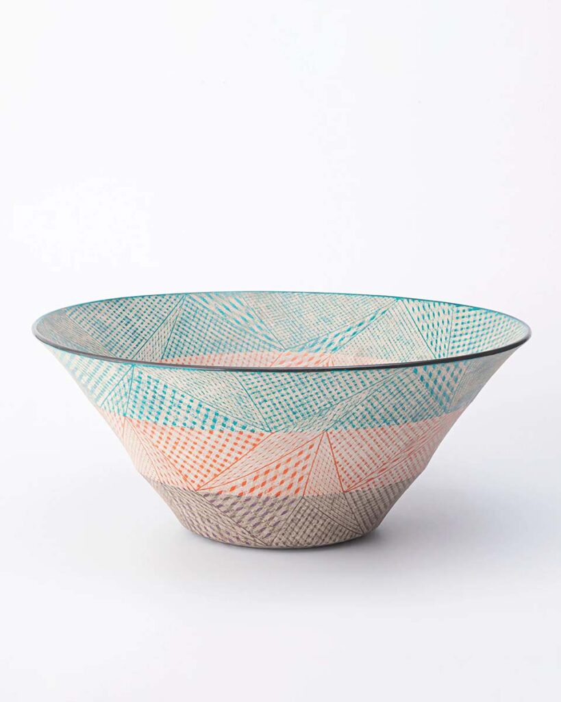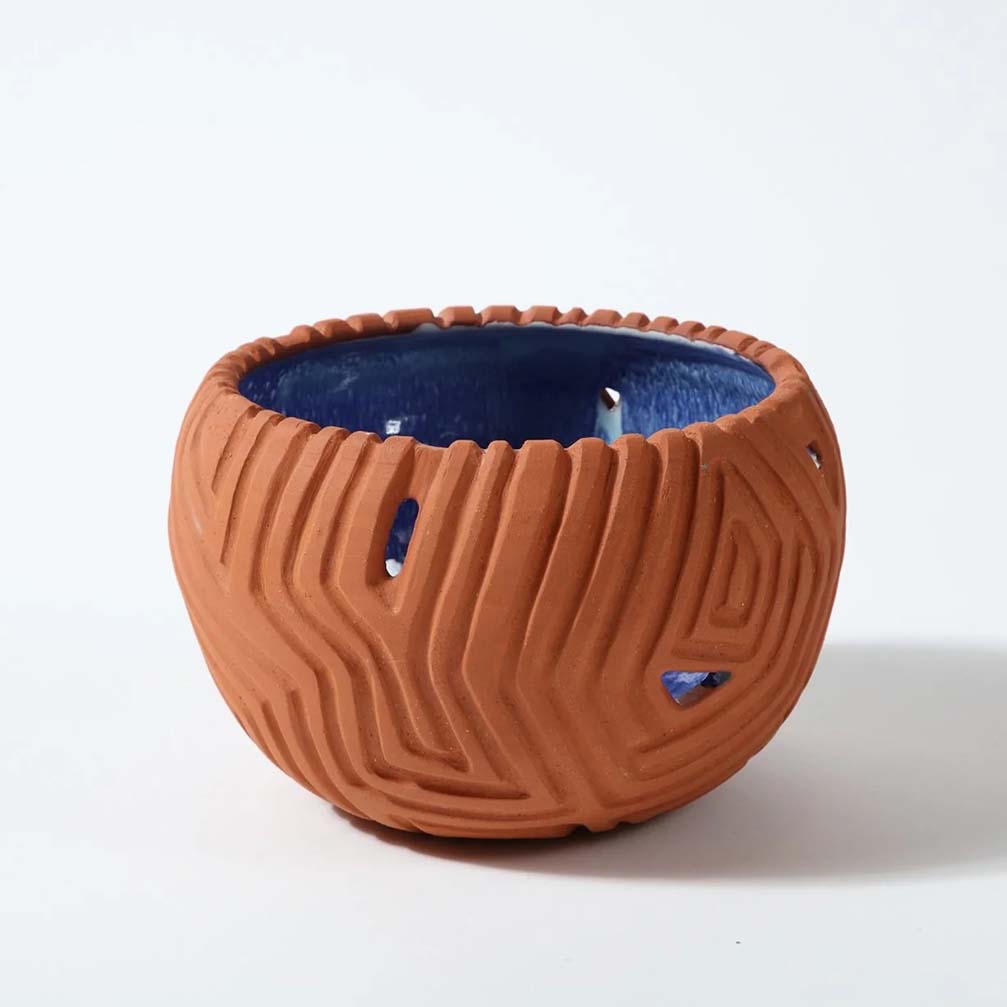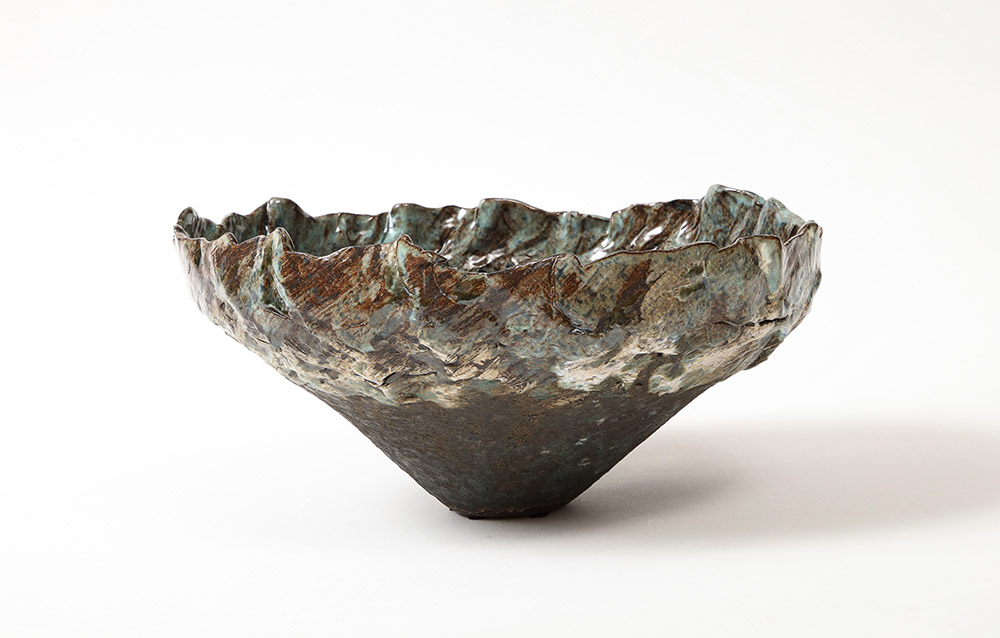 Dena Zemsky | Large Sculptural Bowl #6 | 2023 | Glazed stoneware. Hand-built stoneware bowl with blue glazes | h. 7" dia. 14" | Photo courtesy: Donzella Ltd.